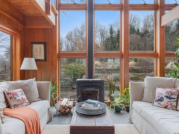 A winding driveway guides you past spring fed ponds, idyllic meadows, and historic stone walls, up to this magical 23-acre compound. The sky seems to open as you arrive, revealing panoramic mountain views and a very special place to call home. A stunning estate with a storybook setting, this expansive property features a main house, a saltwater pool + pool house, a guest house, a studio, a variety of outbuildings, and so much more- and those impressive views never leave your sight. A bluestone walkway leads you to the impressive entrance of the main residence. The first floor of the house has bluestone and wide plank cherry wood flooring plus exposed beams. Natural light pours in from the double height wall of windows gazing out at the garden. An indoor pool (with Fastlane endless pool machine) is harmoniously incorporated into the rest of the home. Next to the pool, you will find a delightful little lounge area with a wood-burning stove. Sure to be the envy of any chef, the renovated kitchen has an abundance of counter space, a well-designed — and gigantic — pantry plus high end appliances like a BlueStar range! Open to the spacious dining and living area, this area also leads out to a covered front porch with a view spanning the majestic Catskills and Shawangunk mountain ranges. Upstairs is a tranquil office that overlooks the indoor pool and surrounding perennial gardens. The amazing views continue into the over-sized primary bedroom and luxurious spa-like bathroom complete with a soaking tub. The second bedroom — also with incredible views — and laundry area complete the second floor. Bespoke bluestone steps lead you down to the basement that offers a fantastic bonus space for game or movie nights with family and friends. An additional full bathroom and ample storage areas bring additional utility to this lower level. Stone paths interwoven with impressive stone walls and mature native perennial gardens surround the home. A cedar hot tub is situated for year-round enjoyment in this mountaintop oasis. At the peak of the property sits a saltwater pool with panoramic views, and we can’t imagine a better spot to spend the warmer months. Two adorable cabanas provide shaded spots to relax between laps or leisurely afternoons with a book. The pool house has beautiful (and practical!) polished concrete floors, a kitchenette, full bath + shower room, and its own laundry. Partnered with a quaint 3-season, fully screened-in patio, it is easy to imagine all of the many wonderful memories to be made. The first of several reclaimed and lovingly restored outbuildings is a serene office/studio. It has vaulted ceilings, a mini-split for heating and cooling, a vintage wood burning stove, built-in storage, work space, and bookshelves — and, of course, picture perfect views of the Catskills. There’s also an adorable guest house with 2 bedrooms, 1 bathroom, a kitchen, laundry, wood-burning stove, central air and heat. A two car (or boat!) garage completes this building. Conveniently situated in the popular hamlet of Accord, this incredible compound is centrally located to all of the great things the area has to offer: Westwind Orchard, Arrowood Farms, Harana Market, Accord Market, Saunderskill Market, Mill and Main, The Flying Goose, Bluebird Wine, and SkateTime are all 10 minutes away — plus the super stylish (but low key!) member club and resort INNESS where you’ll find excellent dining, golfing, tennis, a coming-soon spa, and more, most of it open to the public as well! If you are looking for outdoor adventures, it’s 20 mins or less to thousands of protected acres and hiking trails at Minnewaska State Park, Mohonk Preserve, Vernooy Kill State Forest + Falls, and the Ashokan Reservoir Promenade. Exploring other destination towns is a breeze with easy access to Stone Ridge, High Falls (Ollie’s is a team favorite!), New Paltz, Kingston, and Woodstock. All this and you’re only 90 miles to the GWB in NYC.
