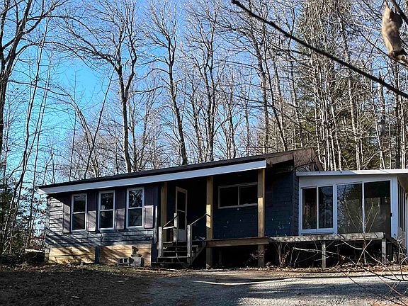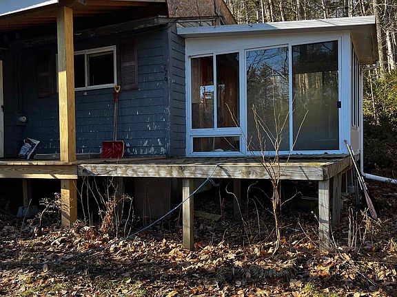 Year round bungalow with water view overlooking Island Pond. Sit in the sun room or on your front deck and enjoy! Large eat in kitchen and a good size living room adjoining to the sunroom. The pellet stove heats the home very well. Drilled Well and Private Septic. Two sheds provide storage availability. Bring your remodeling skills and imagination to make this your pocket of peace for year round living or a second home. This house does need some rehab but there are local financing options available. Not suitable for FHA or VA due to condition. Closing date subject to owner finding suitable housing.