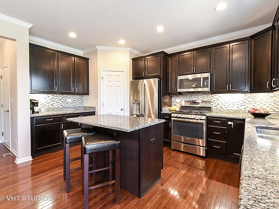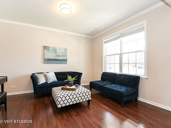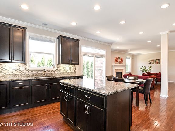 WOW! Best of it all! Stellar location, 5 minute walk to Arlington Park Metra. Four years NEW on Arlington Heights border without the taxes! Equidistant between downtown Arlington Heights & downtown Palatine. Light bright & airy offering 9-foot ceilings, with crown molding. Huge upstairs loft, ideal for playroom, oversized 2-car garage with storage system, hardwood floors throughout, gorgeous lighting, fireplace, transom windows and more! Wide-open kitchen includes modern backsplash, walk-in pantry, large island with breakfast bar, stainless steel appliances and granite countertops. Deluxe butlers pantry too! Mud room off the garage. Expansive upper level includes large loft, jack 'n jill bath, enormous master suite with tray ceiling, built-in window seat, generous WIC & spa-like master bath. Enormous custom brick paver patio with multiple seat walls and fire pit, surrounded by extensive landscaping. Mature evergreens around the perimeter create a backyard sanctuary. Welcome Home.