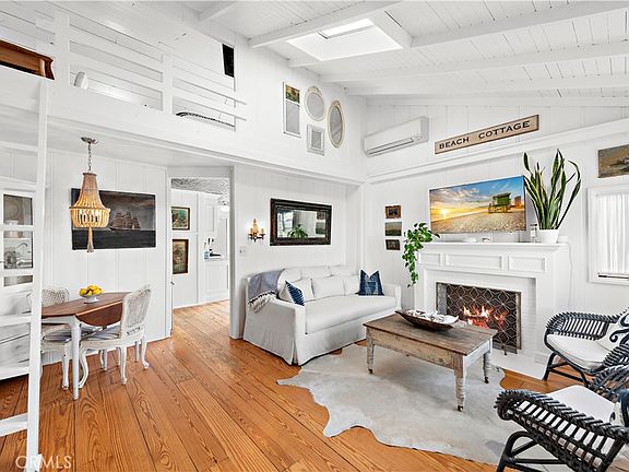 Coastal cottage in the heart of Laguna Village! The cottage is an enchanting residence where natural light abounds and vintage restoration converges with modern updated amenities. Dutch door opens to the living space with high ceiling, skylight, gas burning fireplace and ladder to loft. The separate loft can accommodate a bed, desk, includes closet areas and a peek view of the ocean. Marble kitchen with farmhouse sink, Fisher Paykel dishwasher drawers, Viking gas range oven, subway tile backsplash and antique tin ceiling tiles. The bedroom, bathroom and versatile walk-in closet look out to the rear gardens and hills beyond. Claw foot tub with shower and handheld fixtures, mosaic and subway tiling. Second bedroom, bath and living area on lower level. The grounds are the best kept secret garden with spring flowering plantings in bloom and large grassy yard. An entertainer's dream with large back deck, terraced outdoor seating with louvered shade Pergola. Exterior features a newer roof, gutters/downspouts, Board & batten, Hardie shingle, Trex decking, updated stairs. A one car garage and slate stone driveway provide parking in a bustling area. Less than a block to tennis courts, swimming pool and high school track with community accessibility. Just blocks down Park Avenue the heart of downtown awaits with restaurants, shops, Main Beach, art galleries and the best of Laguna Beach.