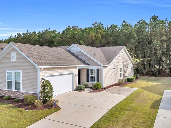 Welcome to this charming 3-bedroom, 2-bathroom patio home in the desirable Bella Vita community, ideally located just off Hwy 501 and near Hwy 31 for convenient access to shopping, dining, and entertainment. Only 5 miles from the beautiful Myrtle Beach shoreline and minutes from the airport, this home offers the perfect balance of privacy and accessibility. Nestled on a private, wooded lot, the home exudes tranquility and curb appeal with its craftsman-style exterior. The spacious 2-car garage provides attic storage and features a convenient utility sink. Step inside to find an inviting open-concept layout, highlighted by stainless steel appliances, 42" white shaker kitchen cabinets with glass accents, granite countertops, a large kitchen island, and a breakfast bar that’s perfect for entertaining. The master bathroom is a serene retreat with a 5-ft tiled shower and double vanities for added luxury. The living and dining areas are brightened by solar tubes for natural light, enhanced by LVP wood flooring and a striking cathedral ceiling. The rest of the home features 9-foot ceilings, adding to the sense of space and openness. Step outside to a large screened porch and an extended patio, perfect for relaxing or hosting guests while enjoying the peaceful surroundings. This home is the epitome of modern comfort combined with timeless elegance, offering easy, one-level living. Experience the best of coastal living in this quiet, sought-after community—schedule your private tour today!