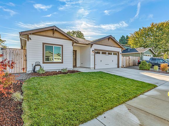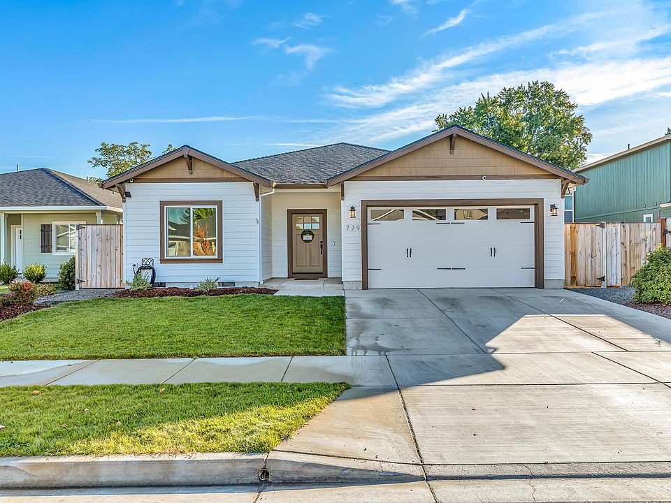 Are you searching for a new construction home without the long wait? Discover this nearly new 2021-built gem in Central Point! As you enter, you'll appreciate the thoughtfully designed split floor plan, featuring two cozy bedrooms and a bathroom at the front. The stunning kitchen boasts granite countertops and stainless-steel appliances, flowing seamlessly into the spacious great room adorned with coffered ceilings. Off the great room, you'll find the inviting primary bedroom, complete with an ensuite bathroom, vaulted ceilings, a walk-in shower, and a generous walk-in closet. The low-maintenance backyard offers a covered patio and a lush lawn area, perfect for relaxation or entertaining. Don't miss out on this fantastic opportunity!