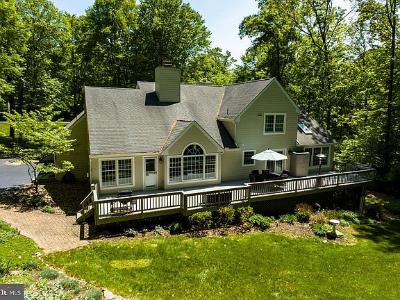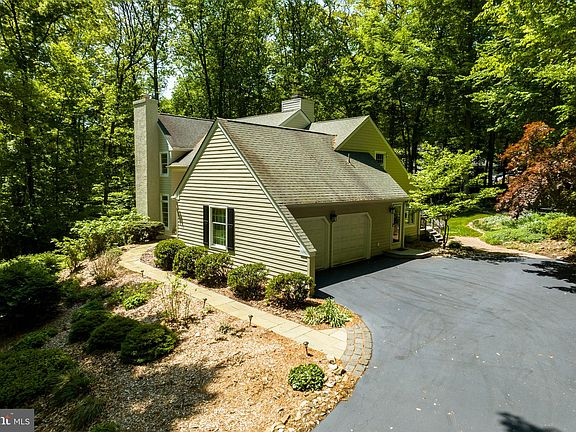 Tucked away down a long private drive you'll find this exquisite, charming home designed by renowned architect, Ann Capron, offering amazing sightlines in an estate-like setting. Beautiful landscaping and hardscaping leads you to the front door where you are greeted by a two-story foyer as you enter. Hardwood floors draw you further into the home, where you'll find the huge gourmet kitchen that will delight the chef and baker in the family with lots of countertops and a large sit-at center island. The double wall ovens, built-in cooktop, stainless steel appliances, cabinets with pull-out drawers, and two pantries provide plenty of function, the custom tile backsplash and recessed lighting and pendant lights make this kitchen a delight! The adjacent breakfast nook is surrounded by large windows, offering a magnificent view of the surrounding wooded area. The living room features a cozy gas fireplace, recessed lighting, and floor-to-ceiling windows, bathing the room in natural light and providing a breathtaking view of the surrounding countryside. The dining room is perfectly sized, featuring crown molding and chair rail, and features a unique pass-through gas fireplace shared with the family room. With a soaring two-story vaulted ceiling adorned with lighting, the family room features a breathtaking floor-to-ceiling stone fireplace and boasts newer energy-efficient Andersen designer windows. The first-floor master bedroom suite offers a cathedral ceiling with skylight, and the tile bathroom features a double vanity, tile stall shower and large soaking tub. The huge walk-in closet features an organizer system. The first-floor study, a powder room, and convenient laundry room round out the first floor. Ascending to the second floor, you'll find two generously-sized bedrooms, along with a newly-renovated tile hall bath with double granite vanity. The fourth bedroom features a bonus sitting room and access to the walk-in floored attic. The lower level was recently finished and includes 1200+ square feet of living space and is ideal for entertaining family and friends. This level includes walk out French doors and a newly installed double window which provide wonderful natural light. This large living area has been divided into an entertainment room, a workout area, a comfortable bar area with tables and shuffleboard, and a precious playroom. The sellers also installed all of the piping needed to easily install a gas fireplace. In addition to the finished living space, a spacious unfurnished back room is ideal for tools and storage. To the rear of the property, you will find a 60-foot-long deck, complete with under deck storage that overlooks a true park-like setting. Creative landscaping, complete with annuals and perennials, perfectly adorn the mature trees surrounding the property within walking distance of East Bradford Park. The rear storage shed compliments the two-car garage, offering plenty of storage space along with the ample inside storage areas. There is also a gas hookup for grilling on the deck. At over 4,700 square feet, this home is extremely energy efficient. The newer energy-efficient windows, along with the 2x6 walls, and ceiling fans in most rooms, make this home very economical to own. Located in the West Chester SD and East Bradford Township with beautiful East Bradford Park a short walk away, and a short 4-minute jaunt to the Borough of West Chester. You’ll know as you drive down this beautiful neighborhood of custom homes and turn into the private driveway that you have found your new home.