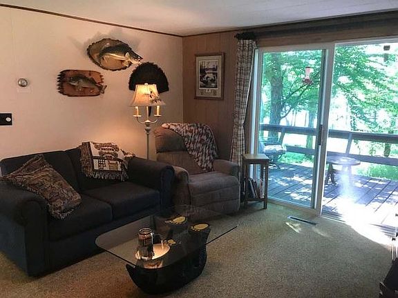 Enjoyable 2-bedroom cabin featuring 216' of frontage on Fisher Lake, a 3-lake chain! Here you'll experience gorgeous views presenting western exposure that captures the most beautiful sunsets! There is a 2-car garage perfect for storing your toys and the cabin has been well maintained! Inside you'll find a spacious kitchen area, dining nook and large living room with waterfront patio door. All very clean and comes completely furnished, even the dishes, bedding, canoe, rowboat with trailer, and golf cart! And if you want to retire here someday, a new survey presents over an acre of land offering room to build a new home and the soil test has already been done. Truly a must see on this much sought after chain!