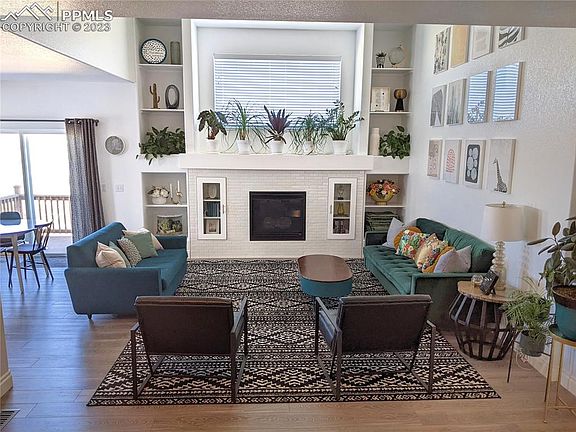 Beautiful home with an incredible Water Front View- overlooking a large pond and open space (no backyard neighbors here). This home has been professionally updated throughout with LVP flooring, new carpet, and new paint. It offers true main-level living with 3 bedrooms, kitchen/dining and living room, as well as the laundry all available on the main floor. The Kitchen is spacious and convenient, with granite-tile countertops, lots of cabinets, a pantry, and Newer Stainless Steel appliances. Off the Kitchen is located one of the laundry areas (this home offers two hookups: main level and the basement). Entering the Great Room, you'll notice the vaulted ceilings and large windows letting in tons of natural light. This area has been completely updated with new flooring, built-ins, shelving and new fireplace. The Primary bedroom has a 5-piece attached bathroom and a large walk-in closet. The primary bathroom has been beautifully updated with new dual vanity and flooring. The other two bedrooms on the main level have been updated with new LVP flooring and fresh paint. Upstairs you'll notice new carpet. The second level offers a generously sized bedroom, full bathroom and a loft, with additional built-in storage. The Walk-Out Basement, which is unfinished, has an incredible amout of space! You'll also find a secondary laundry space, rough-ins for a bathroom and built-in shelving for tons of storage! This home has been meticulously maintained! Enjoy the New Water Heater, New Radon Mitigation System, Ring Doorbell and Incredible Views! Close to military bases (14 minutes to Ft. Carson, 20 minutes to Schriever AFB), minutes to Shopping and indoor/outdoor recreation/parks. Definitely schedule your showing - this one will you'll want to see!