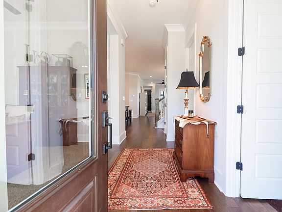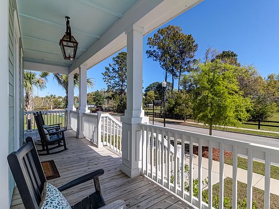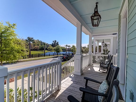 Built in 2021, 7790 Farr Street is a beautiful end unit townhome with wonderful features and finishes. A wrap around front porch with gas lantern overlooks the large natural pond and walking trails across the street. Inside you will find 10 foot ceilings, gorgeous wood floors, gourmet cooks' kitchen with stainless appliances, quartz countertops, farm sink and pot-filler, main floor primary bedroom with en suite bathroom and large walk-in closet, custom plantation shutters throughout, screened rear porch and fenced in yard. Upstairs you will find 9 foot ceilings, three additional bedrooms and two full bathrooms. There is a HUGE detached garage with room for storage plus two cars and a golf cart. Just a short walk, bike or golf cart ride to Daniel Island Academy, Daniel Island School, BishopEngland High School, restaurants, shops and Credit One Stadium plus numerous parks, pool and other amenities that come with living on Daniel Island. Don't miss seeing this immaculate and light filled home with over 2100 square feet, 4 bedrooms, 3.5 bathrooms and great spaces for outdoor living!
