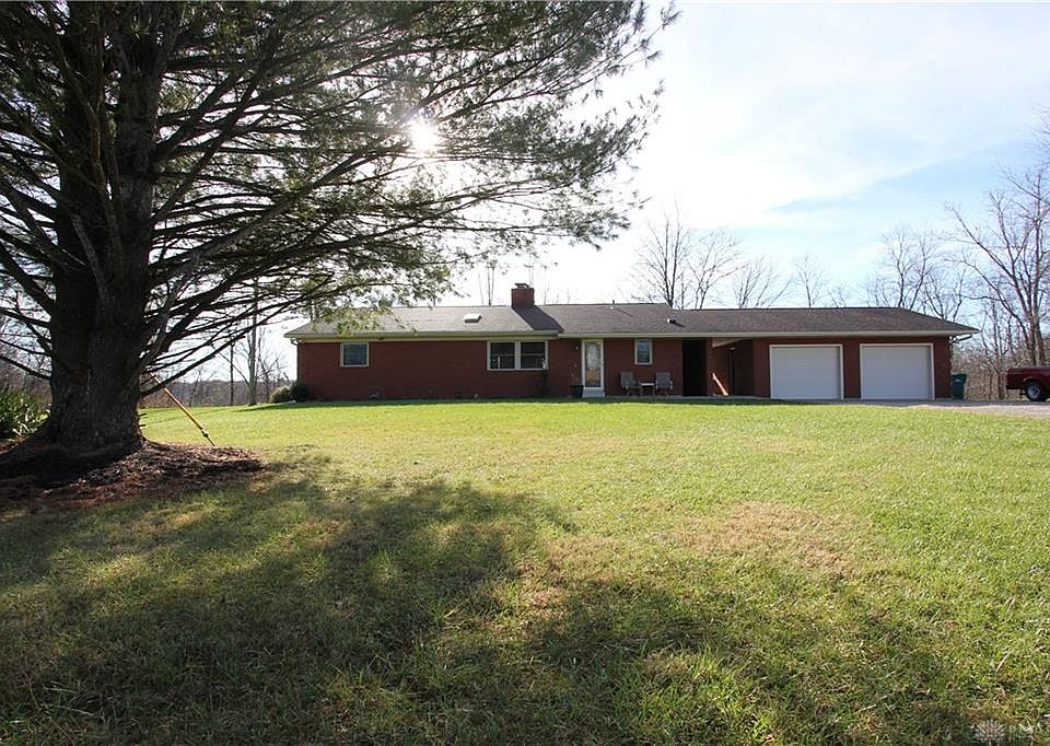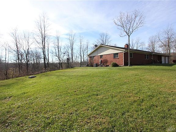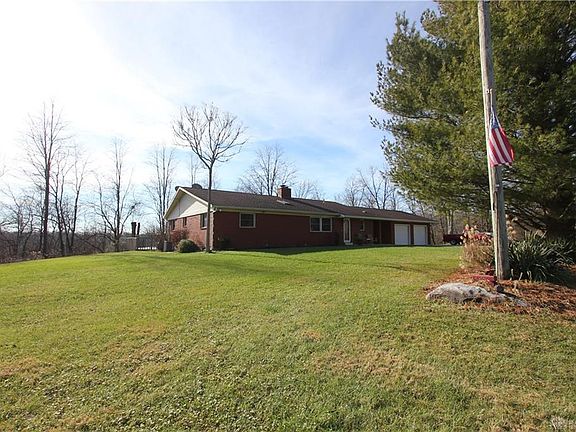 Nice and private 4.27 location that you will love! Brick ranch with open floor plan, 4 bedrooms, 2 full baths, 2.5 car garage and a finished basement with an in ground pool located on 4.27 acres of land with rolling hills and loads of trees! Covered front porch leads into the entry and great room with wood burning fireplace that opens to dining room and updated eat in kitchen all with cathedral ceilings. Off the great room is a covered porch and steps down to the 20x40 pool with a nice large deck. Master offers own full bath and there are 3 more bedrooms and another full bath. The walkout basement features a media room, family room, rec room, storage area and workshop! Home also has an additional garage/storage. Many updates throughout home including: roof, HVAC, windows, water heater, refrigerator, cooktop, counter tops, gutters/downspouts, pool liner, water softener, flooring, paint, light fixtures, fans, front and storm doors, garage door and openers! Great home and amenities!