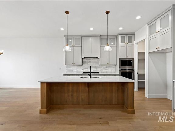 The Pinehurst B Tresidio Homes. This highly desirable plan features 3 bedrooms w/flex den on one level. The open great room features our signature coffered and beamed ceiling. Enhanced with an elegant, modern kitchen that features an abundance of cabinet storage, large center island making meal prep and entertaining a breeze, built-in gas range, in-wall oven and a spacious walk-in pantry! With a welcoming open-concept design, and substantial garage and driveway space, the Pinehurst is PERFECT for hosting you and your loved ones. Retreat to the primary bedroom where you will find yourself in an at-home spa with your gorgeous deluxe full bath, including a walk-in shower and double vanity. With all the exquisite modern elements and beautiful finishes, Fall in love with extra storage and space found in the sizable utility room. Spacious covered outdoor living area. Model home at 6437 W Piaffe St Eagle., 11-6pm Community Amenities will be pickleball courts, Pool, Clubhouse, 10.65 acre park. Photo Similar!