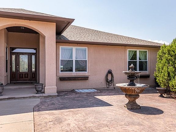 You wont want to miss this outstanding home with gorgeous views! Luxury horse property located just 20 minutes south of Pueblo. Beautifully maintained sprawling walk-out rancher with all the bells and whistles overlooking a beautiful valley. Home features granite kitchen and master bath counter-tops, full wet-bar in the basement, stainless steel appliances, large windows allowing in lots of natural light, breakfast nook in addition to a full formal dining area, wood stove and 2 pellet stoves, large patio and beautifully landscaped backyard area perfect for entertaining, and so much more! Property features a 40 x 80 heated building with concrete floor & game prep and storage area, class A horse barn, sand filled arena and a beautiful rock & iron locked gate. This home will have you feeling worlds away but will keep you close to everything!