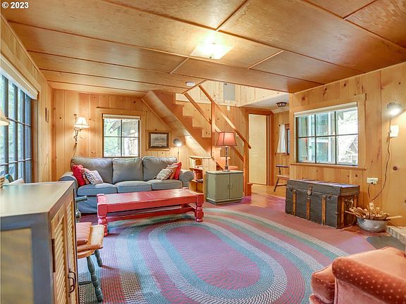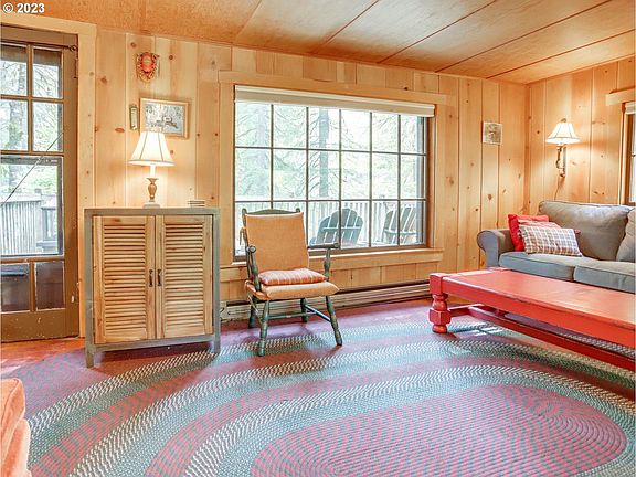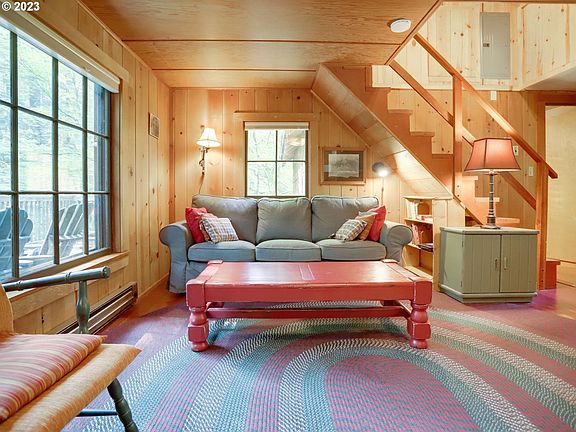 Beautiful riverfront cabin in the Mt. Hood national forest. Open kitchen, living area with original glass windows. Charming stone chimney with wood-burning fireplace insert. Spacious deck surrounded by forest and overlooking the Zig Zag river. Perfect mountain get away! Large primary bedroom on the main level with updated upper level bedrooms with cute kids corner! Ample sleeping space, room for everyone! Updated septic, chimney, new wood stove, new water main line. 10 minutes to skiing, only an hour from Portland. Cash only, no primary residents, no short term rental. Leased Land.