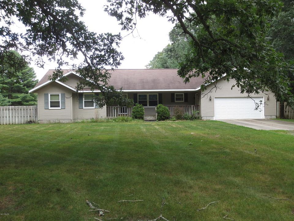 Loaded with tremendous potential, this sprawling 3 bedroom, 2 full bath ranch home is situated in a great neighborhood of newer homes, and close to highway, golf courses, etc. Located in the popular Montague School district, some external features include a 29 ft x 6 ft. covered front porch, a multi-tiered 36 ft x 10 ft. deck , a beautiful fenced back yard, and an over-sized two stall garage with an additional 14 ft x 9 ft. storage nook. Some internal highlights include a 95% energy efficient furnace, ( approximately six years old main floor laundry, central air, corner gas fireplace and cathedral ceilings in living room ( fireplace condition unknown) and a main floor office/den. Some additional features include an open floor plan, private master suite with 7 ft x 4 ft walk-in closet,