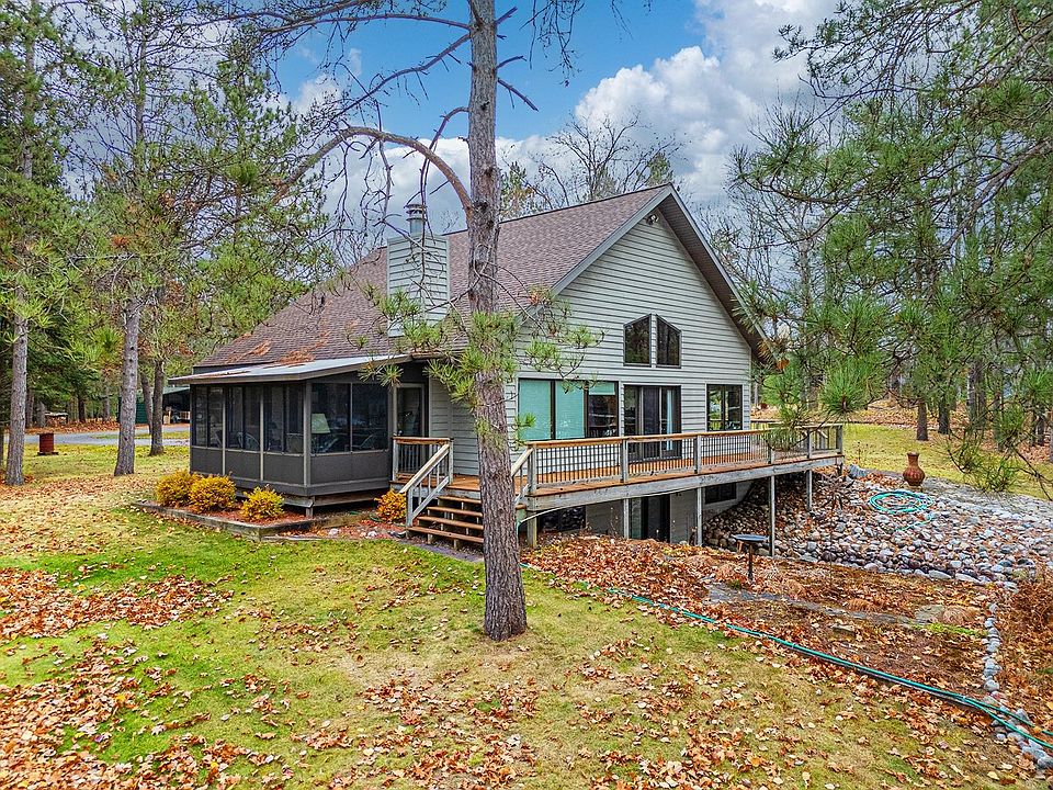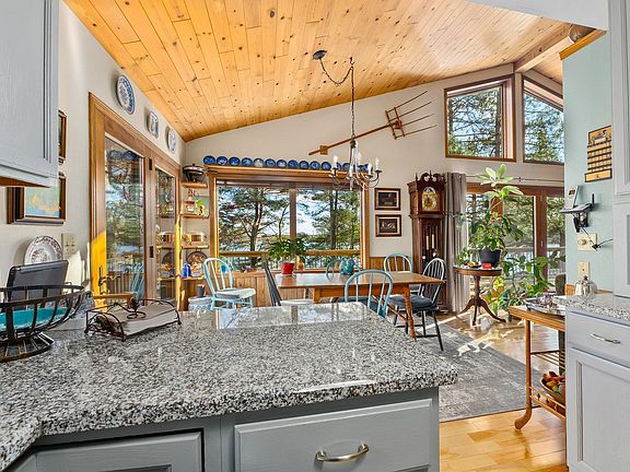 This meticulously maintained three-bedroom, two-bathroom home combines comfort and privacy, featuring a main bedroom upstairs, two additional bedrooms and a bath downstairs, and a convenient main-level laundry. The open living spaces flow seamlessly to a beautiful lakeside deck and a cozy screened porch, perfect for enjoying peaceful woodland and lake views. With an attached two-car garage and a detached heated shop, there’s plenty of storage and workspace. Set on 3.45 wooded acres with 200 feet of spectacular, sandy frontage on the 468-acre North Nokomis Lake, this home offers a very gentle slope to the water, making lake access a breeze. This full recreational lake, 73 feet at its deepest, is ideal for fishing, swimming, and boating. Located near Eagle River and St. Germain, and cherished by its original owner, this property awaits its next owner to experience all it has to offer—especially the beauty of Northwoods lakeside living.