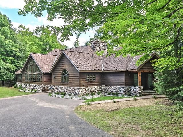 SPECTACULAR DESCRIBES THIS ONE OF A KIND PROPERTY! 701' ftg on Presque Isle Lake w/512' on the PI River with 23 acres! A bridge takes you across the PI river and winds through the woods to this property! Upon entering this 5,600 sq ft home your eye will be immediately drawn to the massive double sided fieldstone fireplace between the LR and DR! Th ultimate Chefs Kitchen boasts a wall of windows, center island, custom cabinetry, high end appliances and over sized pantry. Master bedroom suite has beautiful sunroom attached! 2nd BR on main floor along with Den, office layouts are from the original home. LL has rec room, family room, 3rd BR, full BA plus bonus rooms galore! 1058 sq ft garage w/253 sq ft workshop & upstairs storage. 667 sq ft 2nd garage w/upstairs storage & exterior dog kennel. Beautiful paths take you down to the lakefront and boathouse!! Truly one of a kind!