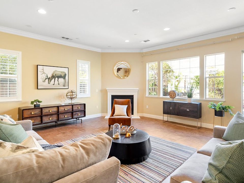 Gorgeous and open floor plan in this desirable Schaefer Ranch home! New flooring on second floor. The inviting entertaining area is all on the first floor with an open 10ft ceiling living room, family room, gourmet kitchen and dining area with a view of the backyard and a beautiful hillside. Elegant versailles tiles throughout. The owners suite is bright and light with a room-size walk-in closet and luxurious bathroom. Spacious 3-car garage. Backyard is decorated with all natural stones and exquisitely designed to feature the breathtaking mountain view, and at the same time satisfying your gardening needs. Fruit trees including apple, pear, plum and loquats bring you the taste of sunny California. It is close to Fwy 580 and 680, BART station, Workday, Stoneridge Mall and grocery shopping such as Sprouts Safeway and 99 Ranch.