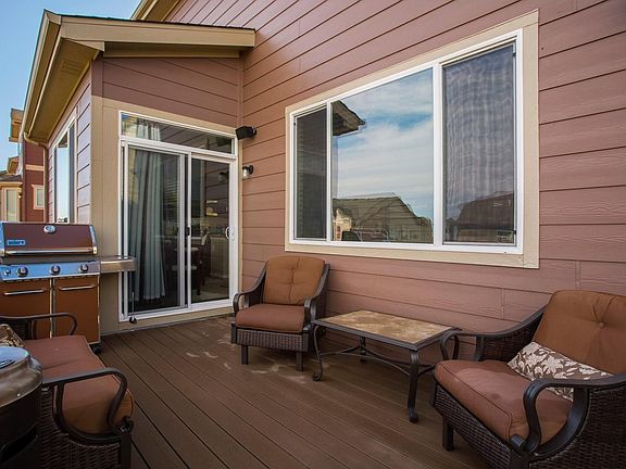 One of, if not the best lot in Kings Ranch Estates! Stunning northwest mountain views in this generously upgraded and popular DR Horton Aspen model. 3 bedrooms up with huge loft area, hardwood floors, fabulous kitchen with GE Profile appliances, slab granite, Java stained Merrilat cabinets with roll-outs, built in "command center" with desks, beautiful deck with mountain views, pantry, main floor study, walkout basement, spacious and open great room, living room and dining area, 3 car garage with epoxy surface garage floor, central a/c plus ceiling fans in seven rooms, wired for dual channel speakers up and down, Levelor blinds, oversize 2nd floor laundry with utility sink, Platte River Trail access less than 1 mile. This home stands out in a great neighborhood!