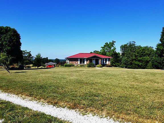 Beautiful 3/3/2 mini farm on 30.80 mol acres. This 1771 sq. ft brick home offers a light and airy open concept living space, beautiful built ins and a great main suite with jacuzzi and shower. All bedrooms have ensuite baths. Serene comfortable screened deck. Big storage area in the basement. Two car garage plus carport. Healthy stable pond (reportedly over 100 years old), year round spring and cave. Apple, pear, walnut and pecan trees. Established asperagus bed. Fenced pastures. Good well, but also city water meter on the property. Outbuildings include new unfinished quest cabin (24x12) and chicken palace with runs, plus garden shed. Acreage is primarily pasture. Gas powered lawn mower and gas garden tools, fencing materials, misc building materials, and new (uninstalled) raised bed materials all convey. It is on paved roads, except driveway. This beautiful property is well maintained and move in ready. Good high speed internet for remote workers. Just doesn't get much better than this.