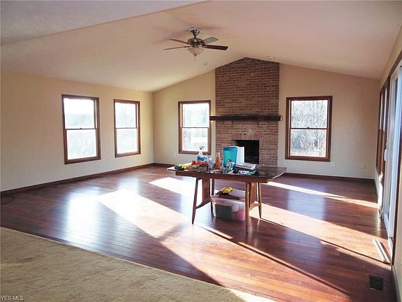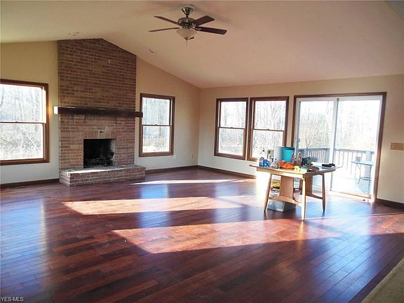 Situated on 59 comfortable acres. This ranch home offers a beautiful open floor plan with views from every window. Entering this home the foyer offers a brick flooring and the wide expanse of the home ahead. The spacious living room offers traditional ceilings, and is open to the kitchen and great room. The eat-in kitchen has a simple design with lots of cabinetry and counter space. The great room is light and bright with views galore through oversized windows and the sliding door to the deck. The floor to ceiling brick fireplace is the focal point of the great room and enjoys hardwood flooring. The master bedroom offers an in-suite bath and a view of the pond. There is an unfinished walk out basement and geothermal for heating and cooling. A 2 car attached garage plus an additional 24 x 24 pole barn with concrete floor offers tons of storage for your equipment, toys or cars. The land is approximately 2/3rd's wooded and 1/3rd open/farm land.