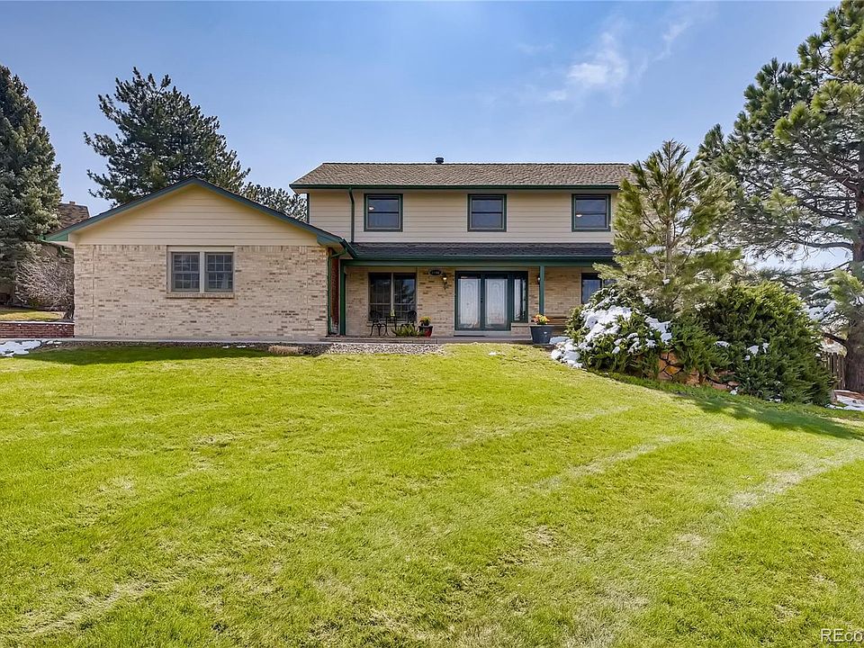 Fabulous updated two-story home on .5 acre cul-de-sac lot with sweeping mountain views to the northwest. It's immaculate! Leaded glass front door welcomes you from the covered front porch providing natural light into the entry foyer. Large formal living room and dining room. Updated kitchen features SS appliances, gas stove and double convection oven, recessed lights, hot water feature at sink plus large walk-in pantry. Large eating space with sliding doors leading to covered back patio. Family room features newly refinished hardwood floors, wood burning fireplace with gas igniter for easy lighting, custom hearth and mantle and abundant sunshine with south-facing windows. Main level bedroom/study and half bath. Huge laundry room with abundant cabinetry for storage, utility sink, trash compactor, washer, dryer and door to exterior. Wood floors take you to the upper level with four large bedrooms and updated full bath. Master bedroom features dressing area with two lighted closets, dressing and vanity space plus updated 3/4 bath. Three additional large bedrooms with ceiling fans and oversized closets. Newer wood windows throughout the home. Oversized 2-car garage features opener, service door, and gas line. Newer driveway and double gate to back yard entry from additional 5 off-street parking spaces. Large shed for storage, cedar fencing, gates to both levels of back yard with garden space and covered patio for entertaining. Unfinished garden level basement with room for storage or finishing. Fabulous community with parks, playgrounds, walking trails and open space.