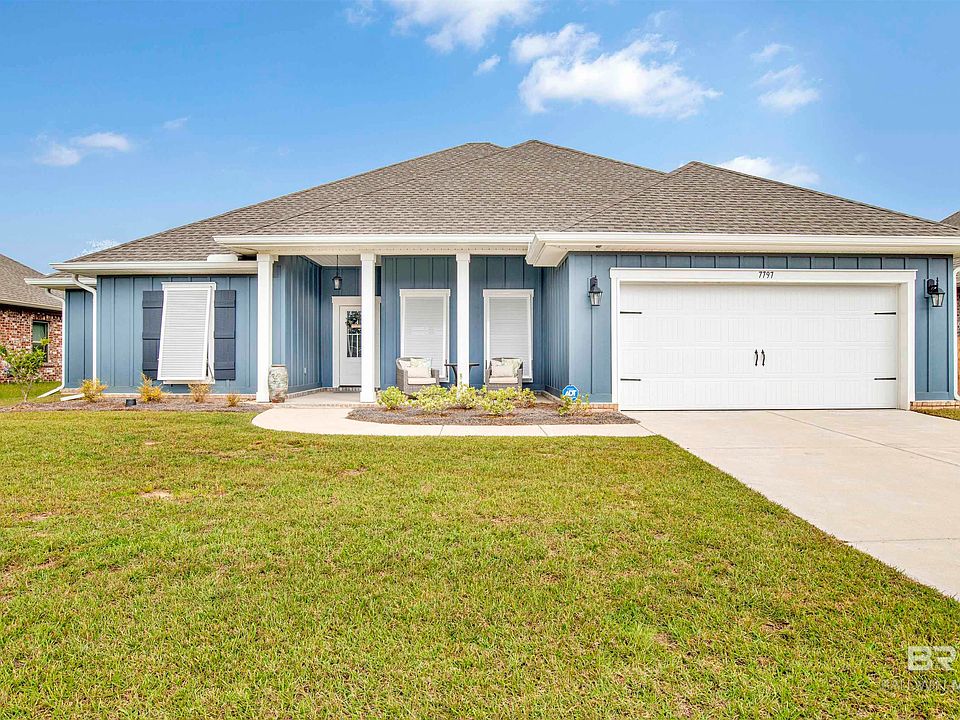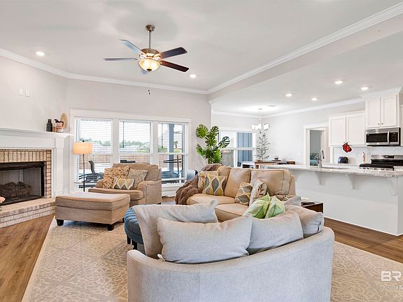 Welcome Home to this exquisite, BETTER THAN NEW dream home in the highly sought after Primland Community. This home is MOVE IN READY! The sellers have done the hard part for you, installing Bahama Shutters (Hurricane Shutters) on all windows, new gutters, a new Kohler generator, fully fenced in back yard, a brand new (2023) gunite pool AND hot tub with fountain. Did I mention this home is also gold FORTIFIED? But, that’s not all. The Palmetto floorplan features: Trey ceilings, luxury vinyl plank flooring, tile in wet areas, carpet in secondary bedrooms, a gourmet kitchen with quartz countertops, gas stove, stainless steel appliances and gas fireplace. The primary bedroom features a walk-in tile shower, double vanity sinks, double closets, garden tub, and a separate water closet for added privacy. The secondary bedrooms share a jack & jill bathroom with walk in closets and a tub/shower combo. With smart home capabilities, you can see who visits your home and even change the temperature in your home while you are away. The TV located in the living area and office will remain with the home. Furnishings are negotiable as well. Located just 3.6 miles from OWA, less than 10 minutes from Alabama’s most beautiful beaches and just a short walk to Graham Creek nature reserve. For days that you want to enjoy peace and tranquility, the home offers a private pool and hot tub. For those days you are feeling more social, the Primland Community offers an inground outdoor pool, tennis and pickleball courts. The Primland community welcomes you home to 7797 Calverton Street. Call and schedule your showing today! Buyer to verify all information during due diligence.