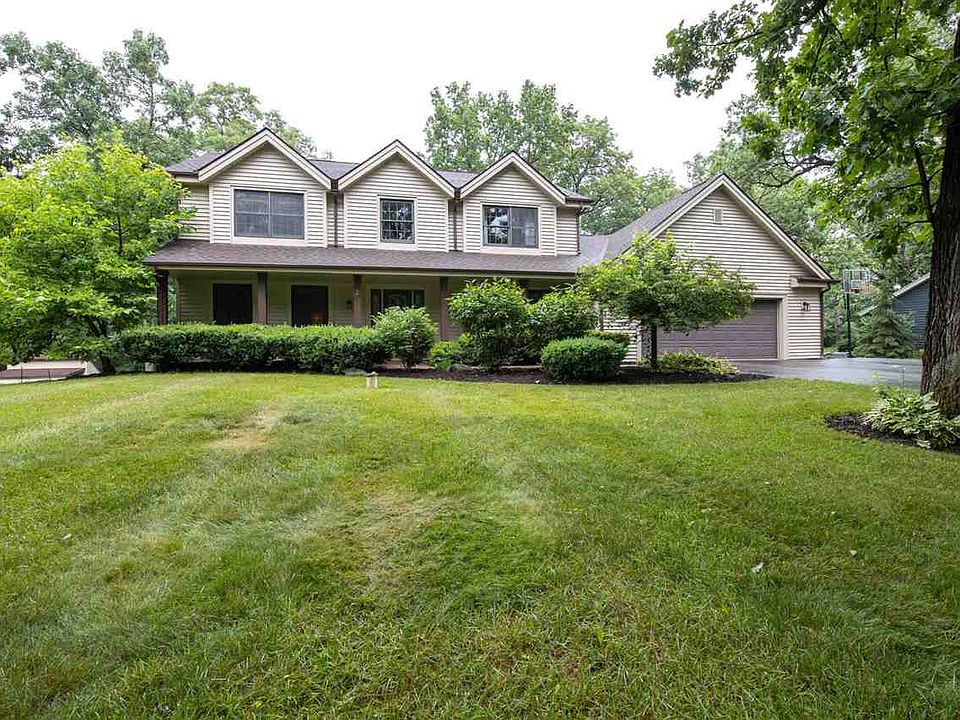 Meticulously maintained home located in The Ledges! This beautiful home ushers you in from the front covered porch into the foyer with hardwood floors that flow into the living room, dining room, family room that opens to the eat-in kitchen, and sunroom! The kitchen features granite countertops, pantry, and breakfast bar! The family room has a gas fireplace with brick surround. The gorgeous sunroom boasts of vaulted ceiling, French doors and access to the multi-tiered deck and beautiful wooded lot! The powder room w/granite and 1st flr laundry room complete the main level. The 2nd level consists of the Master suite w/steam shower, double sink vanity, granite countertops, + WIC. There are 3 additional bedrooms and full bath w/granite + tile floor! The lower level has a rec room. The home offers approximately 2788 square feet of living space. A 2.5 car garage and shed complete the home! Cinch Home warranty. Roscoe/Hononegah Schools. Easy access to I90! All appliances stay!