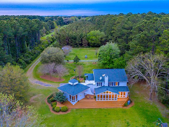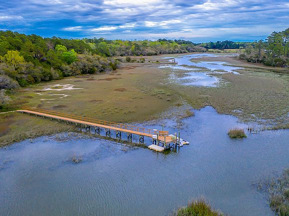 This extraordinary estate is what ''Living in the Lowcountry is all about. Located on Davidson Creek w/easy access to the IWC, fixed/floating docks & a jet dock for your boat. Endless activities:Shrimping, crabbing, fishing & hunting. The estate encompasses 5 acres of mature pines and a 2.6 acre homesite with marsh & tidal creek, 6-8 ft. at high tide!This custom home has a flowing floor plan w/kitchen & breakfast bar(completely renovated in 2012),lg. dining room w/floor to ceiling windows to enjoy the water front view, double sided fireplace & family room completes this open area. Also, a huge master suite w/plantation shutters overlooking the marsh, dual vanity/shower. Upstairs, a master suite, 2 bdrms & bath. A detached cottage & workshop w/loft complete this incredible package.