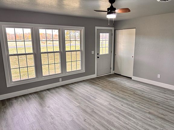Step into this completely renovated, all-brick home that combines modern convenience with timeless appeal. This 3-bedroom, 1.5-bath property has been fully updated from top to bottom, featuring a brand-new gas forced air furnace, central air, and water systems, including a new water heater, softener, pressure tank, and well jet pump. The kitchen boasts soft-close cabinetry, new countertops, and updated lighting, complemented by luxury vinyl tile flooring throughout. Every detail has been considered, with new ceiling fans, a remodeled full bath with a sleek shower enclosure, and fresh paint throughout the home. Enjoy peace of mind with a newer metal roof, all-new gutters, and energy-efficient vinyl double-hung windows. Plus, a new garage door opener adds convenience. Set on a spacious 1-acre lot, this home offers the best of country living with all the upgrades you’ll love!