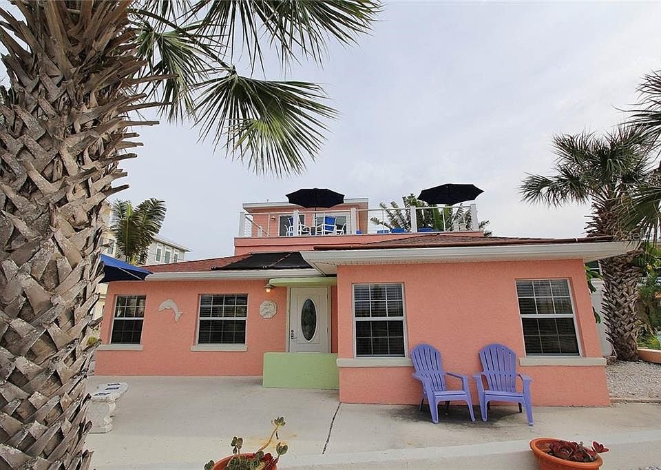 Looking for a totally updated home with beautiful beach views? Look no further! This 2-story, 4 bedroom, 3 bathroom home has an open floorplan and is fully equipped with a designer kitchen including granite countertops and stainless steel appliances making entertaining a breeze. Wall-to-wall tile and curved archways adorn this home located in a truly "old Florida" neighborhood. After a long day at the beach, cool off in your own private pool that is also heated for those few cooler months. The second story living area has a small wet bar along with 2 murphy beds perfect for extra guests. French doors lead out to the oversized balcony where you can enjoy the amazing views of Sunset Beach while sipping your favorite drink. Location is unbeatable, close to numerous restaurants and bars as well as John's Pass Village and St. Pete Beach. Home has been used as a vacation rental property with fantastic passive income.