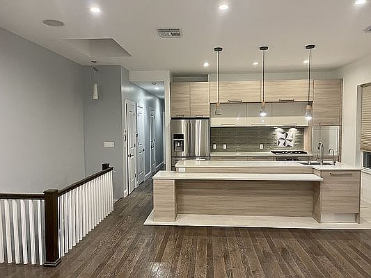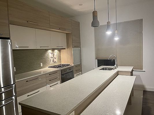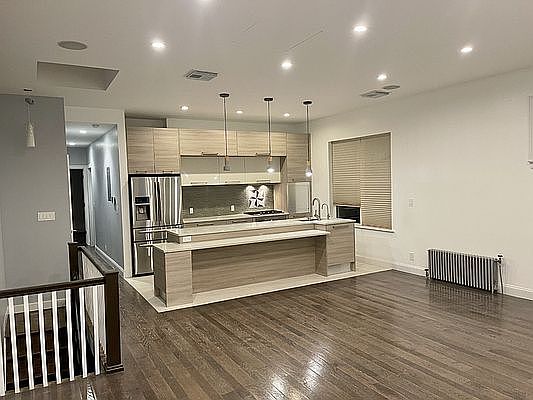 Welcome to this modern, renovated, spacious, three-bedroom, one and a half bathroom apartment located on the second floor of a two story building situated on a wide, tree-lined residential street in Glendale, Queens. Apartment features open concept chef's kitchen with beautiful kitchen island, stainless steel, five burners stove, LG dishwasher. Kitchen is opened to the living-room area. There is a one full, contemporary, tiled and windowed bathroom with bath and barn-door glass enclosed shower and heated floors and another half bathroom. Lots of closet space. Recessed ceiling lights in each room. All new windows and doors. Harwood floors throughout. Split A/C units system in each room. Washer and drier in the unit. Cable ready. Camera intercom. smart home thermostat. Skylight in the living room. Sorry, NO PETS. For more information or to schedule viewing appointment please e-mail, text or call.