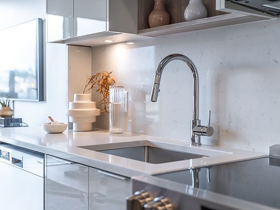 Full-Height Quartz Backsplash