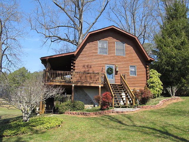 Beautiful 3 level log cabin overlooking Franklin Golf Course. Long range mountain views, mature landscaping, garden pathways and workshop/potting shed. The cabin features include brick and stone flooring in the kitchen, hardwood floors, stone fireplace, covered patio, bathroom on each level, and much more. Close to town yet private and secluded.