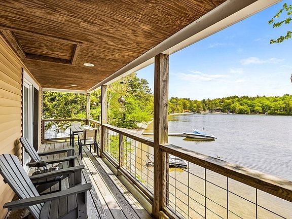 This STUNNING Lake House was remodeled from top to bottom 8 years ago with a modern, open floor plan on FULLY RECREATIONAL White Island Pond!! Beautiful frontage with sandy beach area!! Gorgeous white kitchen with stainless steel appliances and a spacious living room with fireplace (New pellet stove insert) and show-stopping views of the pond!! 1st floor Primary bedroom w/direct waterviews fits a king-sized bed and has a huge walk-in closet and hollywood bath! Beautiful decks on both levels for entertaining or relaxing. Perfect spot on a pretty dead end street. Easy maintenance lot with terraced vegetable gardens, shed and ample parking. Literally nothing to do but move in and enjoy all the seasons on the water!!! Swimming, kayaking, motor boating...the perfect pond!! Includes a boat dock with seating area!! Attic and an unfinished area in the basement as well. Incredible sunsets from this one-of-a-kind property!