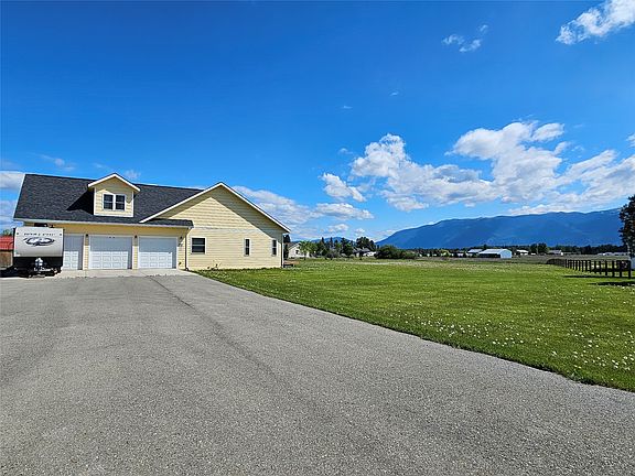 Come home to this charming 4 bed 3 bath home with bonus room on 1.9 acres. Located in the Helena Flats area of Kalispell the views are tremendous! Main floor living with a primary suite with JACUZZI tub on one end of the home, dual bedrooms with a jack and jill bathroom and an additional bedroom on the other side of the home. An over the garage room upstairs is currently used as a game room, it could be used as a theater room, library, crafting room (with room for a long arm quilting machine) and so much more! Attached 3 car garage and a huge asphalted driveway provides a ton of room to park vehicles and a camper. Located at the end of the cul-de-sac traffic is minimal.