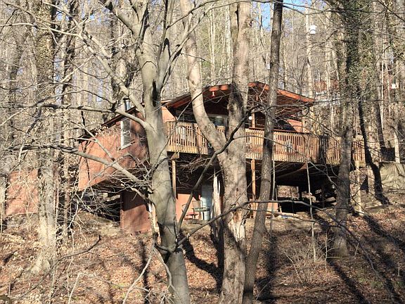 Overlooking Lake Eagle Claw in Hide-A-Way Hills, near the famous Hocking Hills, is where you'll discover this opportunity for a unique second lifestyle! Enjoy wide views across surrounding hillsides thruout the seasons from grand covered upper deck + lower walkout patio. Also extra level parking for family & friends, new windows & doors, and inside updates & upgrades to make this a special year-round sweet retreat. You'll appreciate the extra living space in lower level, w/convenient half-bath & laundry area w/washer & dryer, new flooring, built-in storage, ceiling fan & propane heater. The main level includes wood cathedral ceiling, added dishwasher, cabinetry & countertops, breakfast bar, new baseboard heaters & A/C unit, privacy drapes & classic woodstove. Furnishings negotiable.