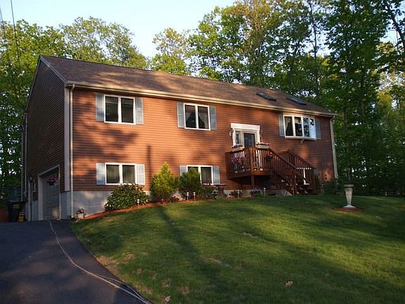 Peaceful and scenic location overlooking Baker Pond comes with this contemporized 52 ft Split with dramatic cathedral ceilings in family room, kitchen, master and new sunroom addition! Maple floors! Oversized main bath with jetted tub! 19x17 family room great for family gatherings! French doors to new 15x13 heated sunroom! Marble flooring in lower level bath! Brand new wall to wall on first floor! Anderson windows! 6 panel wood doors! Deck! Loads of parking! Large storage area under sunroom!