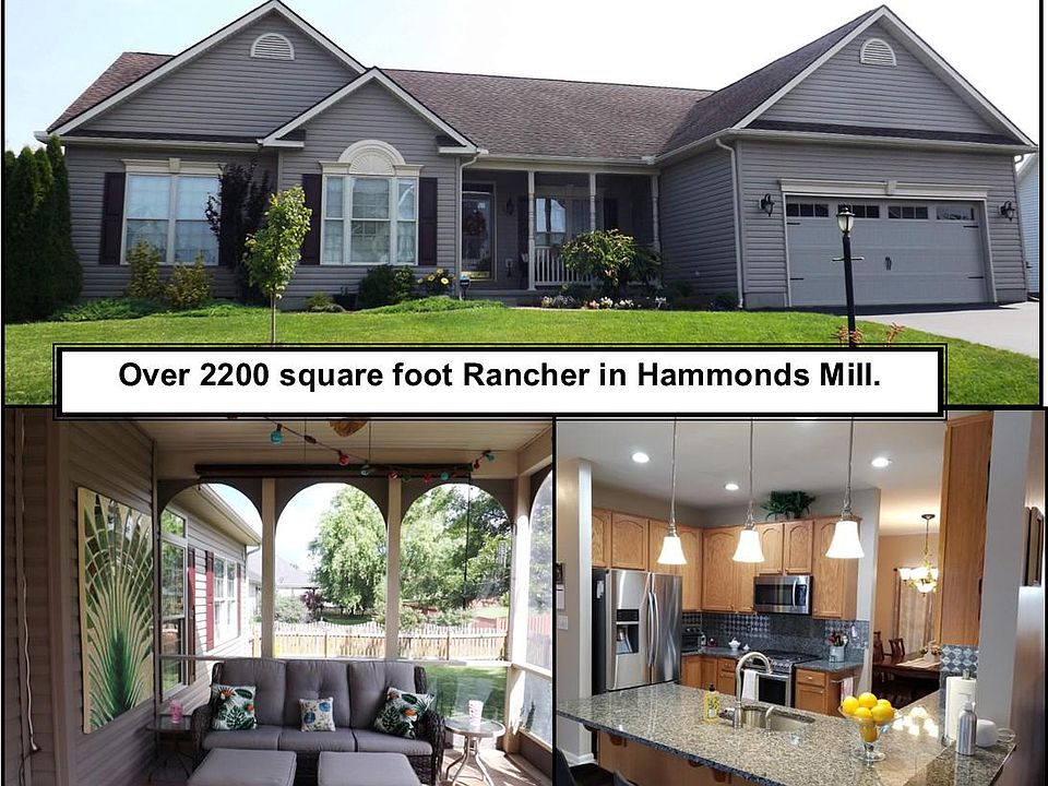 Beautiful well cared for Large Rancher that has been updated. Over 2200 square feet, open floor plan features 3 bedrooms 2 1/2 bath, large office with glass doors, separate dining room, living room with gas fireplace. Kitchen has granite countertops, beautiful backsplash, upgraded appliances that feature propane cooking on stovetop. Oversized primary bedroom has sitting room, walk in closet large primary bath with shower and garden tub. Split bedroom plan. Bedrooms 2 & 3 share a jack and jill bathroom. You also have half bath, laundry room leading to the 2 car garage. Exterior features include screened porch with blinds, fenced rear yard, mature trees, nice landscaped lot. Heat Pump replaced in 2020.