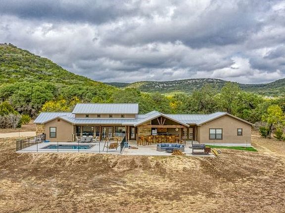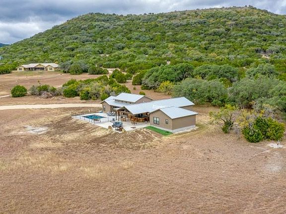 Enjoy Concan living at its finest in this beautiful and spacious, "modern farmhouse inspired" 5BD/5.5BA home. It sits on 6.12 acres on a small private road just off CR350 and has lovely long views and room to roam and watch the wildlife. High end fixtures and finishes throughout will please the most discerning buyers. An oversized 2-car attached garage allows for entry directly into the large utility room. An outdoor kitchen area is surrounded by a generous amount of both open and covered patios. An in-ground pool with nice fencing completes the outdoor space. Owner's will have access to one of the best private parks on the Frio River. This home could be used for nightly rentals if desired.