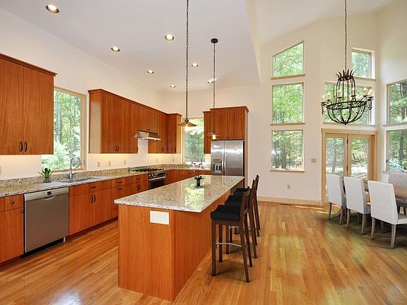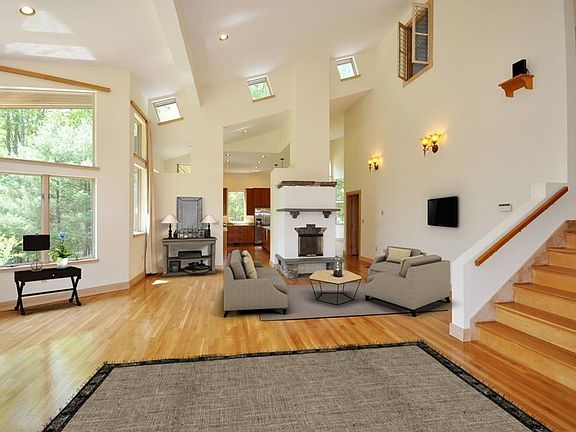 78 Berry Corner is a contemporary home unlike any other on the market! Beautifully designed & expertly positioned on a private 9.85-acre lot, this home utilizes 59 solar panels & continues to overproduce energy month over month. Imagine your own estate without the cost of utilities! Sun-soaked spaces, soaring ceilings, open floorplan & unique details throughout make this property truly one-of-a-kind! Beautifully updated, the brand new kitchen is open to the dining area & offers mahogany cabinets, stainless steel appliances & large island with breakfast bar. The family room is the heart of this unique home with a grand fireplace at its center & access to the entertainment size deck. Complete with 3 bedrooms on the upper level and a 4th potential guest/aupair suite on the main level. Retreat to your own private paradise with over .5 miles of trails, open fields, lush yard, & 1.5 story outbuilding with endless possibilities. Too many details to list this house must be seen to be believed!