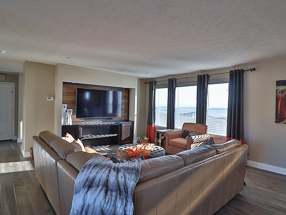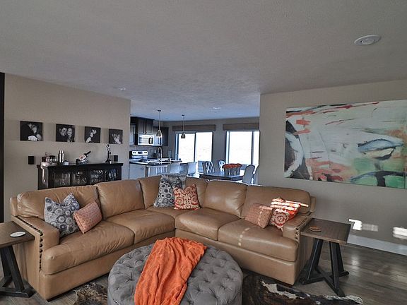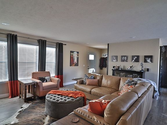 This impeccable home sits upon hill in the foothills of the dramatic Beartooth Mountains next BLM. The kitchen and dining area are open to the living room. A custom barnwood accent wall holds a 70 inch TV and surround system which is included. The kitchen is very efficient with a breakfast bar, plenty of counter space, stainless steel appliances and a pantry with a barn door.