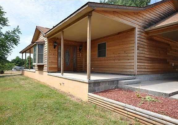 Secluded mini-farm with 3+acres features unique custom-built Western Cedar, open floor plan, rancher with 3BR & 2 baths plus detached workshop w/Apartment, barn with 2 stalls & tack room, pond, 2 pastures w/wells & a storm shelter. Kitchen features beautiful custom cabinetry, granite, tile, stainless Kitchen Aid appliances; two-rack DW & deluxe fridge. Lovely, decorative stone Fireplace in Great Rm. Big Master suite has French doors for private access to screened porch. Two Southern porches.
