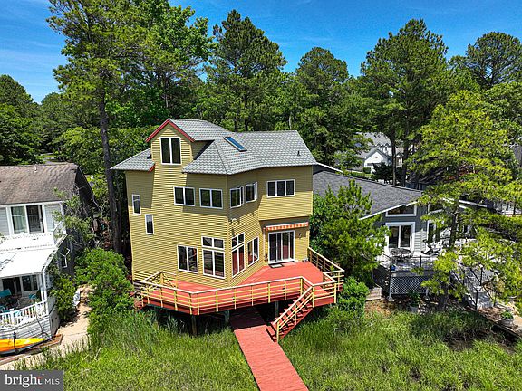 Book your appointment now to see this custom built waterfront home with dock on Manklin Creek, a quick boat ride across Isle of Wight Bay to Ocean City. Sited on a waterfront lot on Boston Dr. in Ocean Pines, this coastal contemporary offers an open plan for the living/dining/kitchen areas with sweeping views of the creek and your private pier. In addition to the entry level bedroom and full bath, there is a large owners suite on the second floor with plenty of windows to enjoy the view as well as a LARGE walk-in closet that serves double duty as a convenient location for the washer/dryer. Additional full bath and guest bedroom also on second level. The 3rd floor loft area is perfect for additional sleeping quarters, or can be used as bonus/flex space. Hardwood and tile flooring throughout the 1st and 2nd floors, custom maple cabinetry in the kitchen, fireplace in 1st floor bedroom are just some of the unique features you will find at 78 Boston. If you are looking for a home with great character and beautiful views of the creek with regular sightings of diverse waterfowl, than this is a must see! The community of Ocean Pines is conveniently located close to the resort town of Ocean City, MD and the natural beauty of Assateague Island State and Federal parks. The area is perfect for boaters, beach-goers, anglers, foodies, fun-seekers, or those looking for the peaceful coastal lifestyle. The community of Ocean Pines boasts low HOA fees ( $850/yr) low property taxes ( $2700/yr) and a LONG list of amenities available on an a-la-carte basis. Within the community are many conveniences including; shopping, dining, healthcare, etc all just minutes away. This is the perfect opportunity to secure your beach get-a-way, investment property, or primary residence in the coastal community of Ocean Pines.
