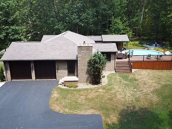 This appealing 2500sq ft ranch style home is situated on 2.34 acre lot with a pond. This home has been meticulously cared for by single owner & offers lots of privacy! Located on a cul-de-sac, enter a paved driveway leading to the beautifully new landscaped grounds & 2 car heated attached garage. Upon entering, your greeted with a large white kitchen leading to open floor plan consisting of living room, breakfast nook, dining room & main laundry room. You will find 2 guest bedrooms with full bath, large master bedroom, ensuite & walk in closet. The finished basement has a bedroom, half bath, family room with wood burning insert stove & den/office/extra room. Backyard is a dream! You can relax outside on covered patio. There is a 28 ft. above ground heated pool & large deck for entertaining! New fire pit & 2 sheds. Home is guarded by wired security system. Perfect Location-min. to Nemacolin Woodlands, Yough Lake, Ohiopyle State Park, 30 min to Morgantown WV & 75 min to Pittsburgh.