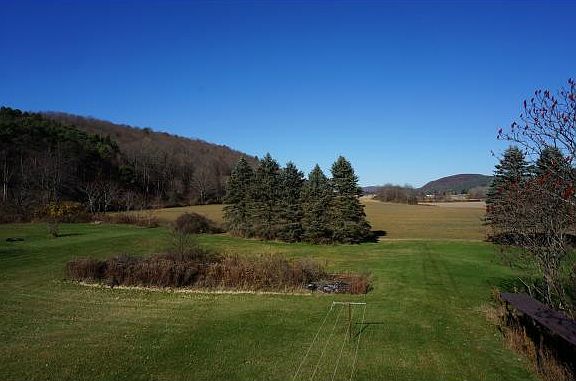 Spacious village home with country feel and expansive valley views on a 2 acre lot. 3100 square feet of space a plus a full walkout lower level. Versatile floor plan can offer 2 bedrooms on main floor plus 2 -3 more in the second floor. Solid home with nice presentation from the road and a large 2 acre yard with shed and outdoor fireplace. Some natural woodwork and natural doors. Possible conversion into a multi family house or keep as a sprawling single family. Possible shop or studio space. Huge living room, covered patio, 2 car garage, paved drive, updated boiler and a whole lot of space.