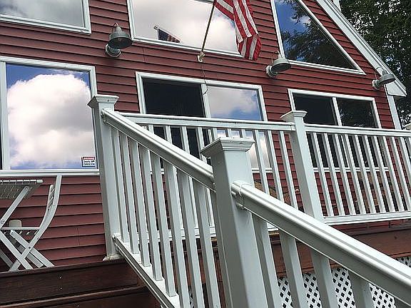 VIEW,VIEW,VIEW up and down the lake as property located on a point. Level, sandy beach access. Open living area includes spacious kitchen. Wrap around deck.