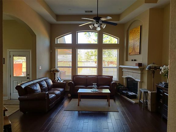 Ultra GREEN Chesmar 5-bedroom, 3.5 bath home in Creekside Park- The Woodlands. Fifth bedroom down can be used as an office/study. Luxury GRANITE KITCHEN with stainless steel appliances, refrigerator, included. Stylish iron stair rail, wood floors downstairs. Generous covered porch & patio with pristine spa. FRONT-LOAD W/D included, sprinkler system, 2\'\' blinds. Energy Star Qualified Home. Excellent location near schools, parks and other amenities. Furniture also for sale!