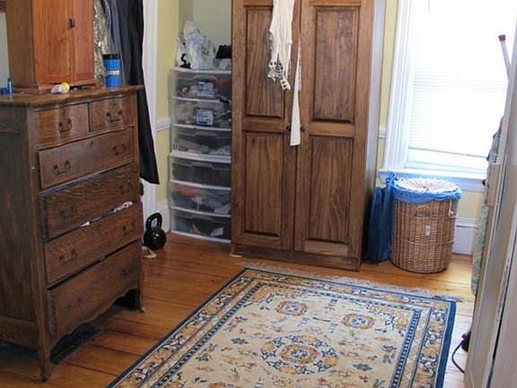Could almost be a 2 bed. 4 rooms: large front room works best a living room but could become a bedroom as there are two ways to enter the apartment; smaller, walk through middle room has been a living room in the past but could be a dining room too; small bedroom only has room for a queen bed and a dresser; and eat-in kitchen in back of the house. Hardwood floors in all but the kitchen. Free laundry and storage in the basement. Pets are negotiable too. INCREDIBLE LOCATION CLOSE TO PORTER AND DAVIS SQUARE'S!