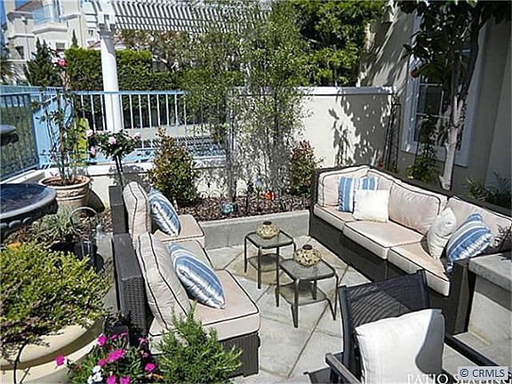 Provence inspired townhome boasting impressive canyon, Catalina and ocean views in exclusive gated community. Sought after open floorplan features spacious living room with volume ceiling, fireplace, crown molding, French oak hardwood flooring and adjacent large, lushly landscaped patio. Formal dining room with custom drapes and wall coverings. Gourmet kitchen with granite counters, built-in refrigerator, stainless steel appliances, 6 burner Jenn-air gas range and Bosch dishwasher. Bar stool seating opens to breakfast nook and adjoining family room with built-in Samsung TV. Master bdrm features two Closet World walk-in closets, a black marble accented fireplace, designer baseboards, crown molding and private balcony with breathtaking panoramic views. Master bath has an elegant marble-like ceramic tile floor, custom shower with basket weave tile accent and rain shower hand-held showerhead feature, along with dual sinks with Carerra marble counters from Restoration Hardware. Enjoy two secondary bedrooms, one with two custom built-in desks, bookshelves, file cabinets, Samsung Smart TV and ceiling fan. Other quality features include large laundry room with custom cabinetry, wiring for security system and speakers, central vacuum and new lighting fixtures.