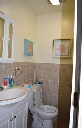 1/2 DUPLEX LOCATED IN CARTERET. THREE BEDROOMS, 1-1/2 BATHS, CENTRAL AIR, HARDWOOD FLOORS. PARTIALLY FINISHED BASEMENT WITH LAUNDRY ROOM AND REC ROOM. WHY RENT WHEN YOU CAN OWN YOUR OWN HOME. PRESENT ALL OFFERS