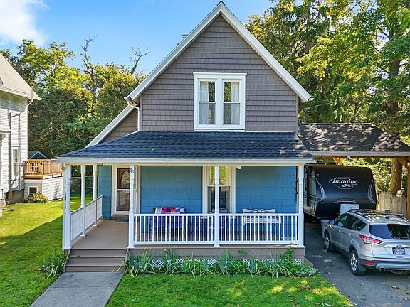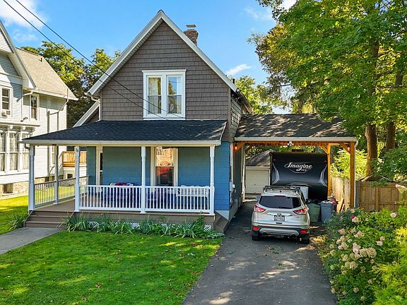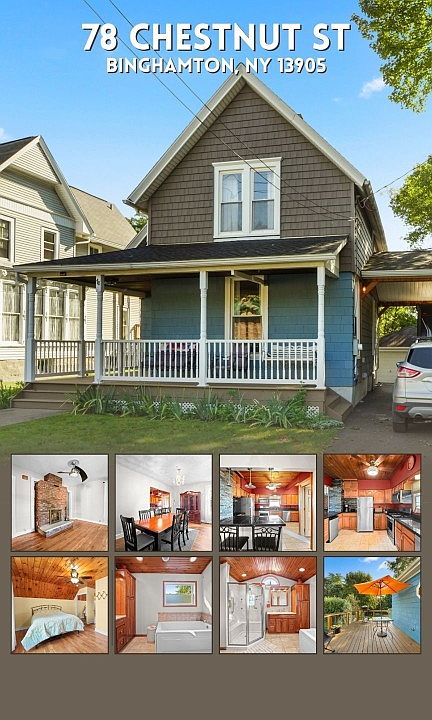 Come see this beautifully maintained and updated home on Binghamton's coveted West Side. This home sits on a spacious lot that features a large front porch, a new walkout deck off of the kitchen, a two stall garage, carport and long driveway. Inside you will find well maintained hardwood floors and updated tiling throughout. The living room features an elegant Rumingford Box fireplace that heats up like a furnace to add extra warmth to your home during the winter months. The living room flows into a large dining room and updated kitchen. Both rooms have unique lighting and offer ample space for many people to enjoy. The kitchen has granite counter tops, a breakfast nook and an extra built in mini refrigerator, perfect for hosting others. Step into the amazing master bathroom, you will fall in love! The master bathroom features a bubble tub as well as a stand up shower. The second floor includes two spacious bedrooms and a full bathroom. Don't miss out on this charming home!!