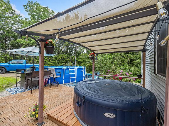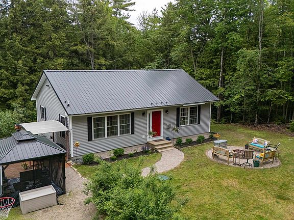 OPEN HOUSE 6/14 11AM-1PM! Situated on over 5.8 acres of wooded land, this 2-bedroom, 2-bathroom ranch offers peaceful one-floor living with direct access to the Beech River at the back of the property. Inside, the open-concept living room and kitchen offer a warm, inviting space with an eat-in countertop and gas range, perfect for cooking and entertaining. The primary bedroom includes a cozy propane fireplace for year-round comfort. The full walk-out basement provides additional space with a partially finished area, a 3/4 bathroom, and an extra room ideal for a home office. Outdoor living is a dream with an inflatable hot tub, fire pit, above-ground swimming pool, and pergola, while the back deck is perfect for relaxing and enjoying the sights and sounds of nature. In close proximity to Ossipee Lake, Indian Mound Golf Club, Lake Winnipesaukee and only 30 minutes to the White Mountains!