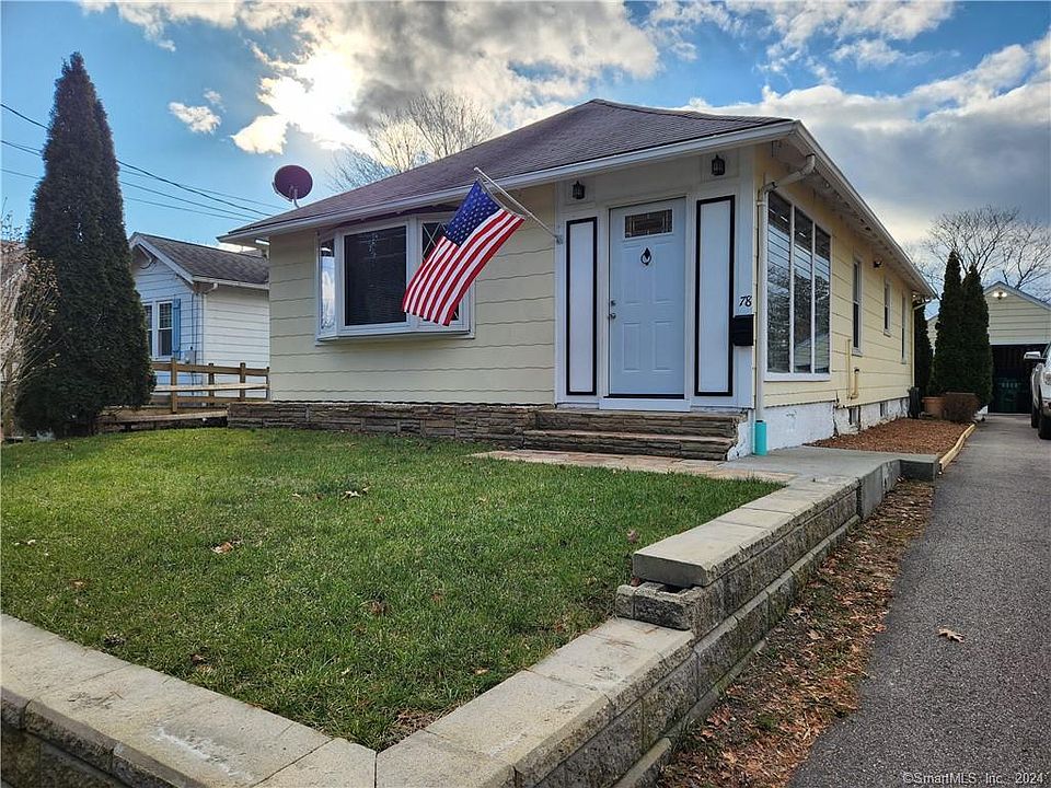 Looking for easy one floor living? Come take a look at this updated ranch with a 1 car oversized detached garage! The 3 season sunroom with slate floors greets you as you enter into this charming home with an open floor plan. The light filled and sunny living room offers a bay window, built in book shelves and ambiance from the gas log fireplace. The updated kitchen with black granite counters,tile floor, gas stove, ss appliances is a chef's delight. The full bath boasts new vanity and lighting. Both bedrooms have ample closet space and ceiling fans. This home also has 200 amp service, been freshly painted, new front door, and a cedar closet. The back deck leads to a patio, beautiful gardens, a new wooden privacy fence, firepit area, and a private back yard .The location is perfect. It is minutes to shopping, restaurants, area beaches, and is an easy commute to Electric Boat, Navy base and Pfizer. Centrally located between Boston and NYC, it is perfect for a weekend retreat or an Air B& B.
